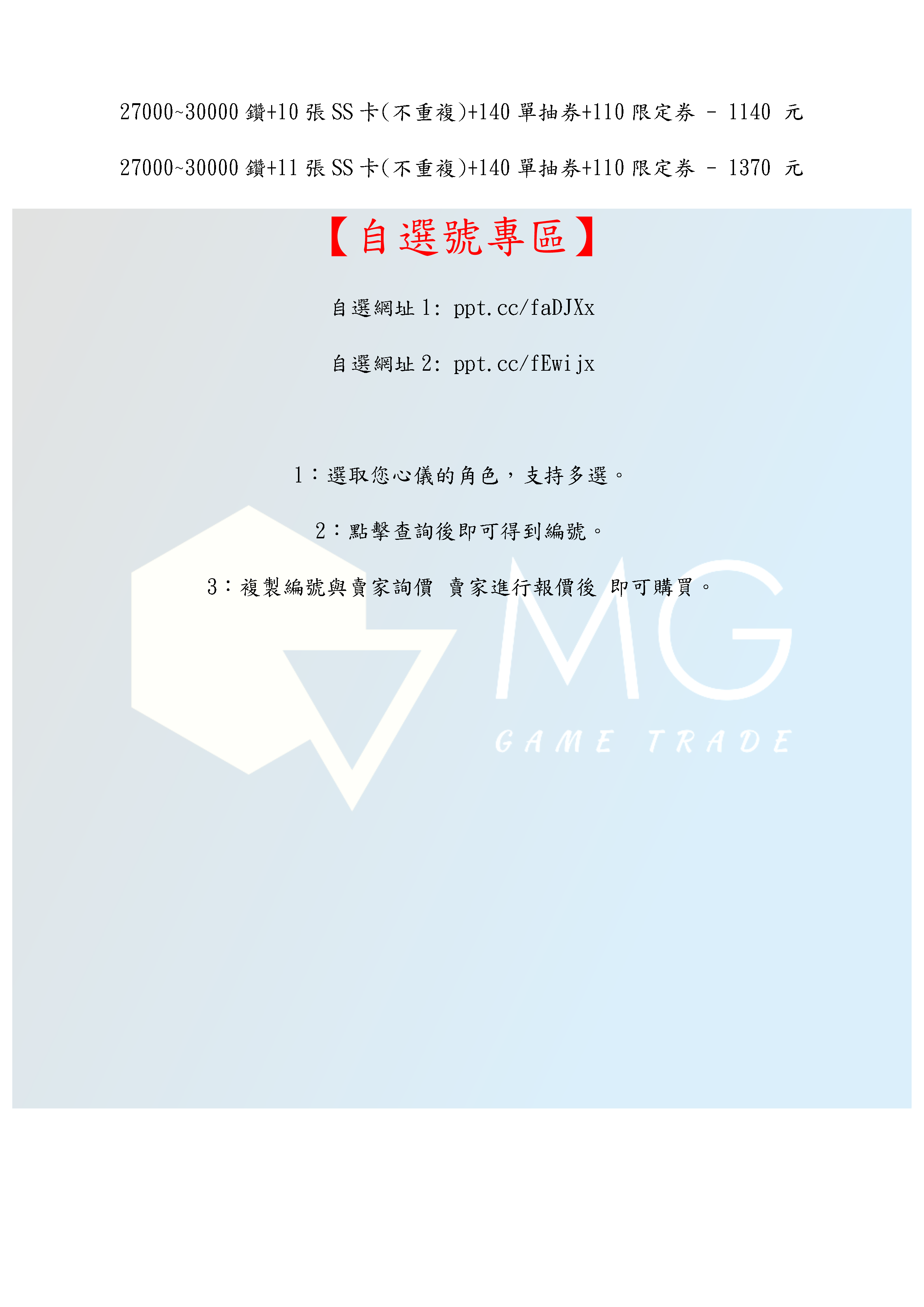 帳號 【初始號】 【MG數碼】 日服 多石號 多鑽石號 初始號 自抽號 自選號 自選組合
