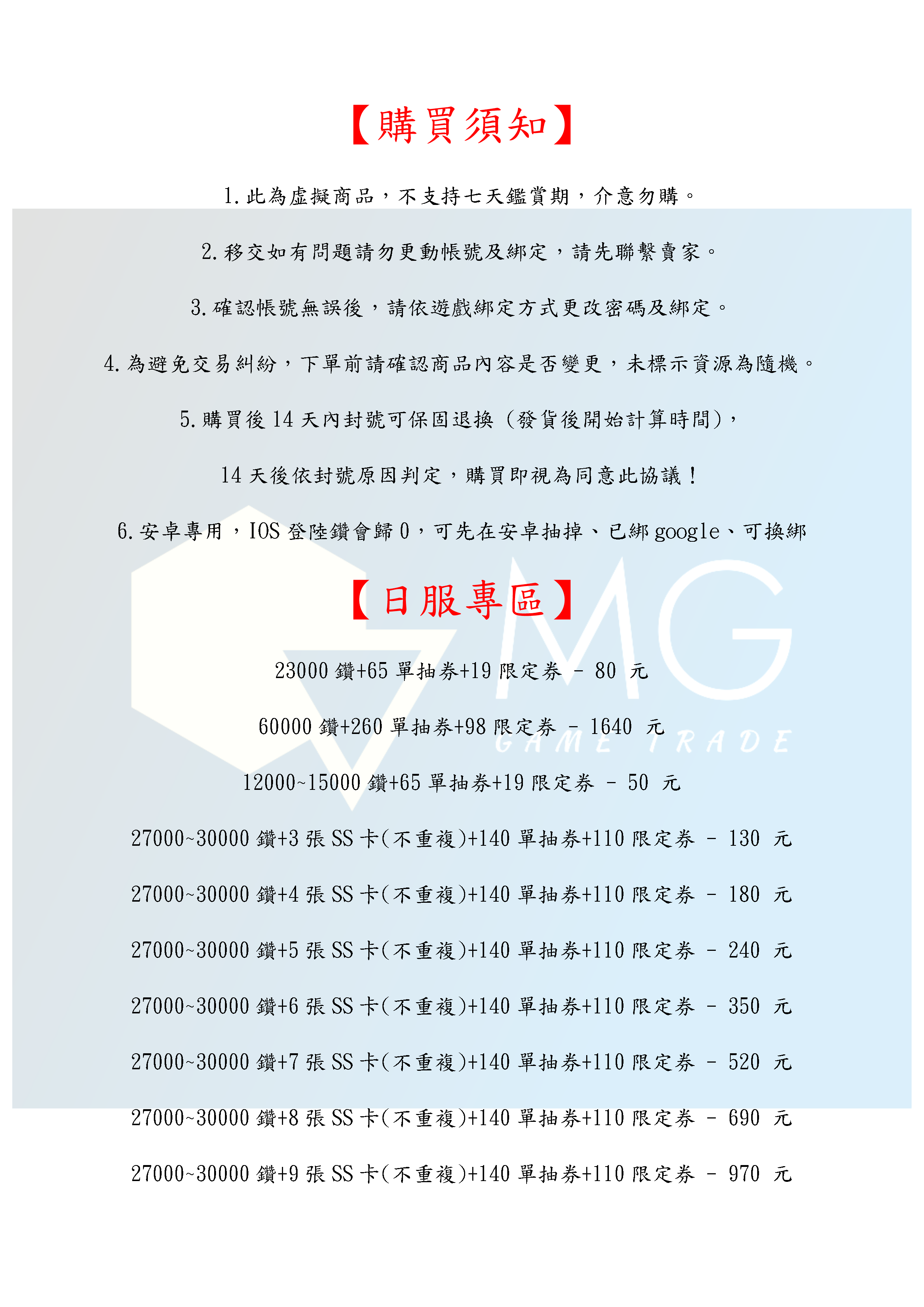 4.為避免交易糾紛,下單前請確認商品內容是否變更,未標示資源為隨機。