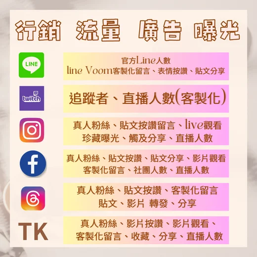 Thread 各式流量互動價目表 點此查看價目表