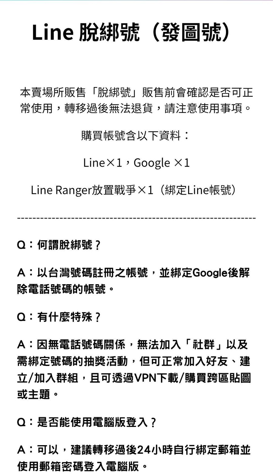 Line 新號/脫綁號/發貼圖專用號 google登入 已綁定google帳號 無手機綁定,無社群功能,其他功能正常 可直接VPN 購買他國貼圖主題 價格浮動,請私訊詢價,下單視同已閱讀圖片內容,請遵守使用方式。