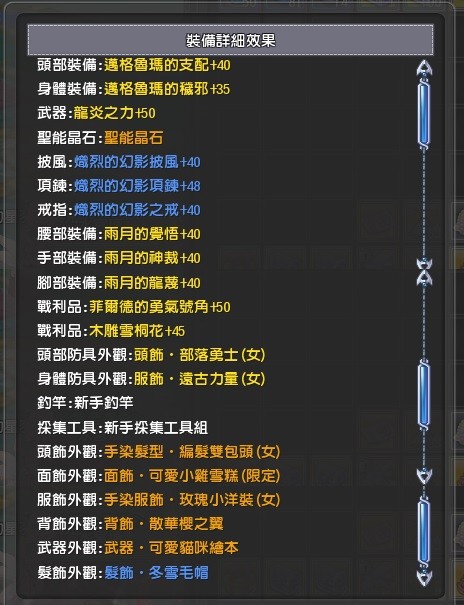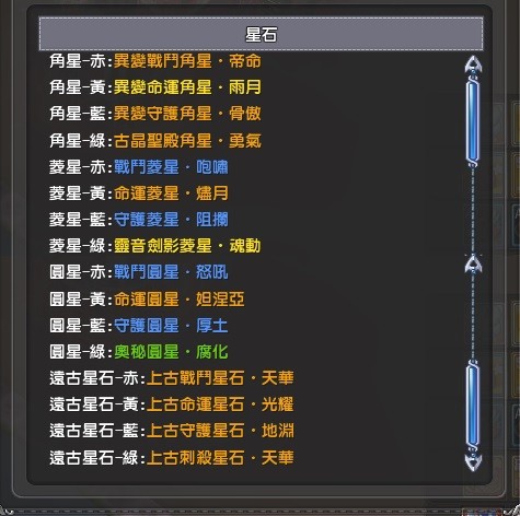混能精魄‧魔樂γ、符能精魄金牛、符能精魄銀鼠、火象星宮祝福、晴兒護身符、五階星能精魄‧狂熱、一 二 三 四階星能精魄‧戰歌、混能精魄賢者