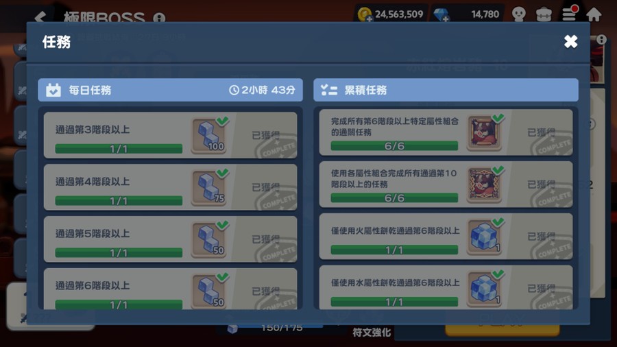 極限BOSS>純色同屬隊(每日任務各位有時間盡量打最高階拿符文~)