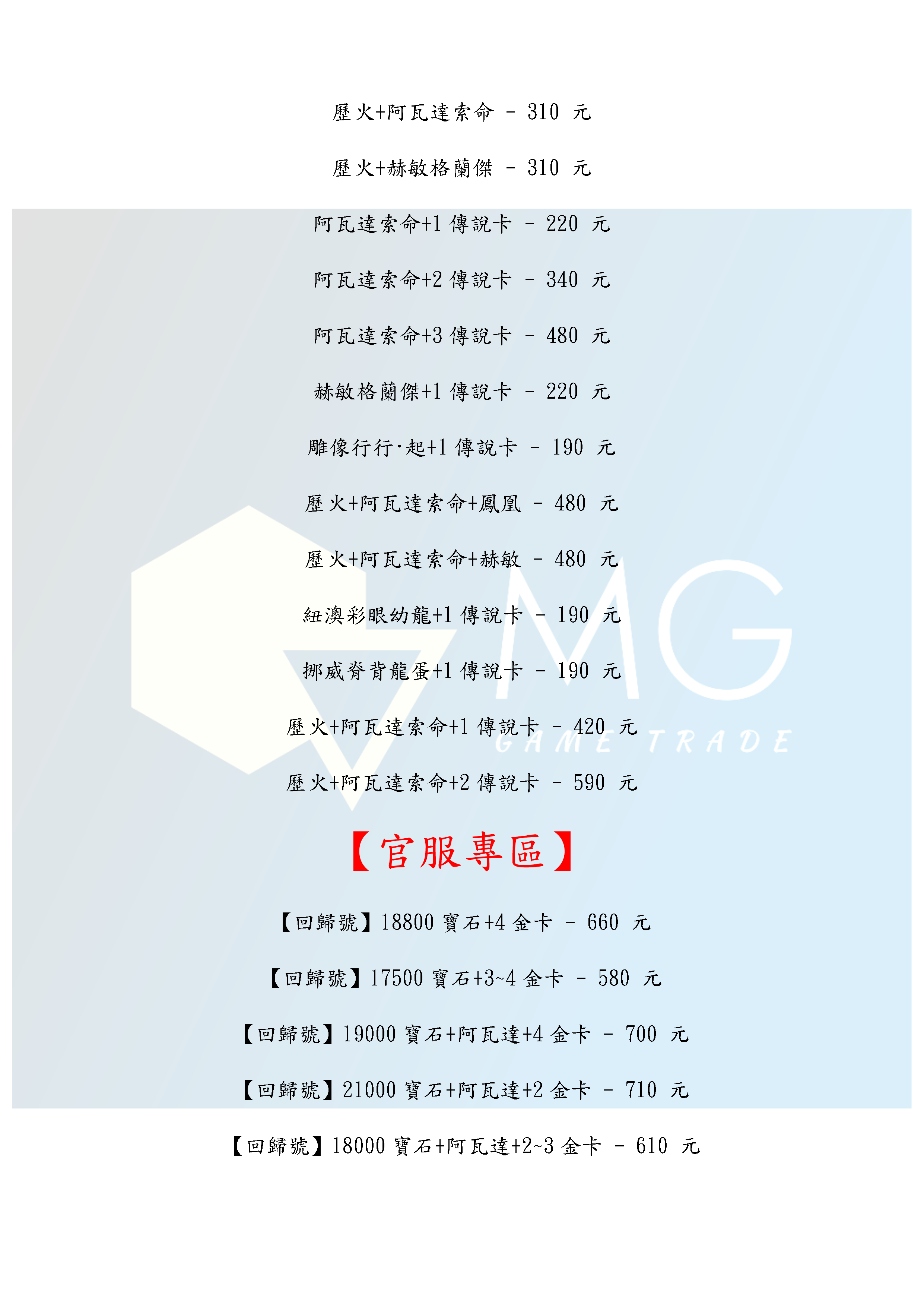 帳號 【初始號】 【MG數碼】 陸服 多石號 多寶石號 初始號 自抽號 自選號 自選組合