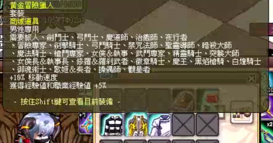 黃金冒險獵人 +10%跑速 男女都有