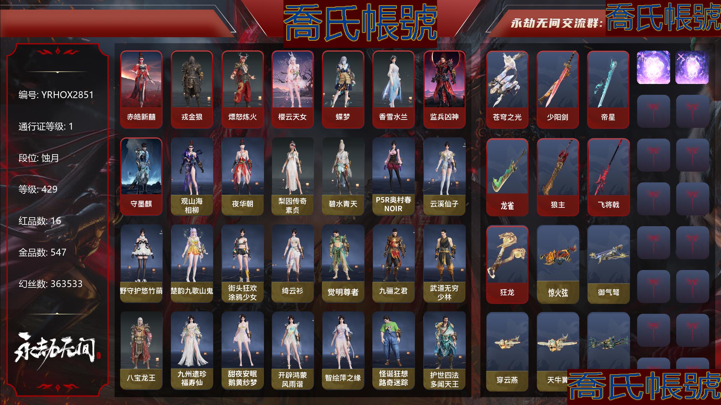 夏日派對·椰風夕照,烈豪,蒼龍心炎,醉山川,炎烈珠(腰部),紅玉壺(腰部),火之三昧(背部),蛋仔派對·眼罩(面部),碧玉髓(面部)