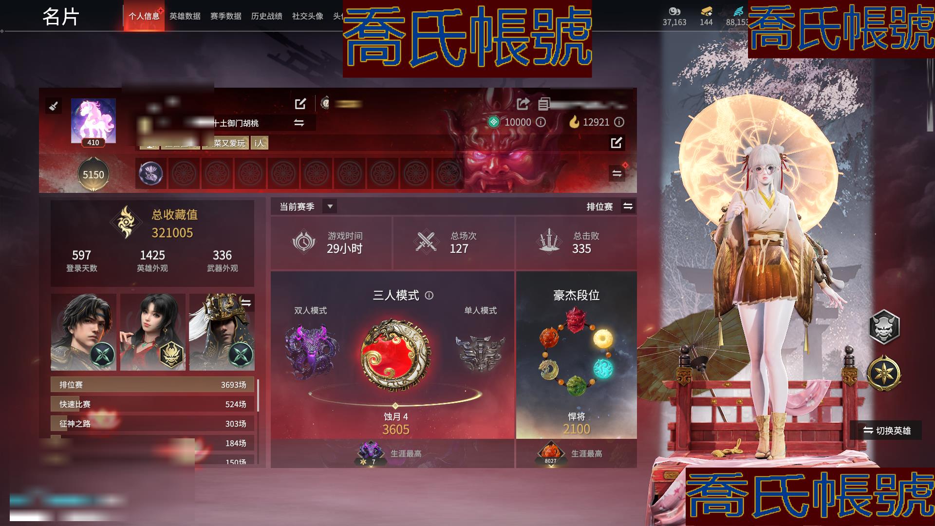 【YJYCNXK300811】15紅621金|等級410||幻絲88153|金磚144|通行證Lv.62 紅色神品:初代玄女,星輝魔紗,化生明王,戎金狼,沙漠香風,通天狐襖,化道者,畫中仙,畢方,麒麟魄,少陽劍,帝星,龍雀,飛將戟,狂龍 角色金色皮膚:倒反陰陽·熾羽,開闢鴻蒙·山川潤,觀山海·相柳,碧水青天,九陰聖女,秋藏桂,P5R·奧村春NOIR,綠野守護·悠竹萌客,綺雲衫,觀山海·腓腓,覺明尊者,冬日綺韻·白熊,九驪之君,八寶龍王,九州遺珍·福壽仙,甜夜安眠·鵝黃紗夢,夏日派對·長夏清瀾,智繪·萍之緣,春雪,怪誕狂想·致命玩笑,怪誕狂想·街頭夢語,怪誕狂想·路奇迷蹤,怪誕狂想·友情歲月,鬥羅大陸·唐三,追獵,不良人·李星雲,長歌詩韻·鷓鴣天,巫師3·傑洛特,逆水寒·染煙,逆水寒·江海滄瀾,遊四海,洛天依·星空投影,P5R·芳澤霞VIOLET,巔峰極速·小可,三麗鷗家族·凱蒂貓,怦然心動·軟暖甜夢,長歌詩韻·遣唐使,春日序曲·晨風,夏日派對·高校水著,承雲蘭壽,御宅羅夢,陰陽姬,貴胄少女,狩獵都市·暗夜利刃,決戰平安京·戀念私語,妖刀姬,汐淚,綠野守護·暗沼摩羅,阿娜希塔,楚韻九歌·湘夫人,逆水寒·鳶紗,觀山海·文鰩,赤霧煙霞,伏波龍女,煦陽漫敘,倒反陰陽·鐵面,開闢鴻蒙·金戈止,2674·爭鬥洪流,長歌詩韻·戍關將,複製體·尼爾,弘毅袍,華夏寶甲·漢光,龍之影·過江龍,P5R·雨宮蓮JOKER,黃庭道,梨園傳奇·柳生,封神錄·申公豹,司天命,朝聞道,音浪震盪·群星光彩,春日序曲·寒芷,祿運玉霄,封神錄·龍吉公主,自動人形·A2,赤丹朱湛,禍津素盞,花之傾奇,倒反陰陽·凜冬,巔峰極速·蕾雅,拳皇·不知火舞,浣煙紗,瀚海蒼鷹,福瑞天澤,葫蘆兄弟·蛤蟆頭領,西行劫·悟空,冬無歸,熾火照夜,夏日派對·盛夏白陽,春不斂,夏日派對·赤夏悠漾,梨園傳奇·麗娘,封神錄·妲己,日影花陰,黃昏巫主,複製體·凱妮,卷王,季中賽2025·漠海,天工奧妙,長歌詩韻·念奴嬌,夏日派對·半夏晚風,虹貓藍兔七俠傳·虹貓,金財聚輝,封神錄·姜子牙,雲間影,綠野守護·山漠獰影,古冢行,天虹詠,暖冬茶馨,雪鈴綺歌,巫師3·特莉絲,啟明之輝,虹貓藍兔七俠傳·藍兔,長歌詩韻·如夢令,狩獵都市·雷行獵手 髮型金色皮膚:落霜發,韶光發,綠野守護·嬌憨發,P5R·NOIR髮型發,伏苓發,春日序曲·蜜芙發,大耳狗·雙馬尾發,九州遺珍·春桃發,甜夜安眠·暖絨發,鬥羅大陸·海神發,逆水寒·江海發,巫師3·白狼發,不良人·三聖涅發,鬥羅大陸·雀變發,木棉發,長歌詩韻·星橋發,P5R·VIOLET髮型發,凱蒂貓·丸子頭髮,道詭異仙·太歲發,洛天依·投影發,綠野守護·冷傲發,倒反陰陽·銘誓發,(挑染)清威發,P5R·JOKER髮型發,(挑染)羽客發,(挑染)音浪震盪·黯星發,(挑染)代號·冷萃發,靈兒發,封神錄·紅鸞星發,排霜發,拳皇·女忍發,(挑染)戾君發,(挑染)桀驁發,流螢發,幽焰發,鶴髮,狩獵都市·蒼焰發,(挑染)狐緋發,(挑染)酷洛米·雙色捲髮發,不蠱發,古溪發,(挑染)商月發,露華髮,驚雀發,不凡·童真發,秀逸發,(挑染)獅鬃發,(挑染)玄冥發,長歌詩韻·豪傑發,逆水寒·極夜發,虹貓藍兔七俠傳·虹發,封神錄·仙風發,(挑染)逐影發,鶴姿發,巫師3·王室顧問發,蜜語發,秘銀髮,(挑染)牽雲霞發,長歌詩韻·沉醉發,虹貓藍兔七俠傳·藍髮,狩獵都市·迅猛發 武器金色皮膚:驚火弦,穿雲燕,咕咕,沉默審判,戲祥雲,綠野守護·雨幕,石中火,天心玉,狩獵都市·潛磷,雪國禮炮,兔華籠,鑽山,造景,貔貅吞寶,龍嘯,鶴逐霞,丹鶴,凝冰魄,赤霞,長歌詩韻·夜觀燈,迎宵,烏木弓,誅神,逆逢,轉輪弓,仙毫,腥紅之月,蓮心劍雨,炎魔,不良人·華陽針,玄銅飛軍,翠影,詭刃八岐,綠野守護·毛乎乎,天狐,2674·原型,不良人·龍泉劍,虹貓藍兔七俠傳·長虹劍,虹貓藍兔七俠傳·冰魄劍,巫師3·湖女之劍,亢龍,監星尺,複製體·月光與黑暗,福祿雙至,含光承影,醉花風,殘陽,毅魂守,鎏金勺,碎星河,雷賜,陰陽師·鬼切,倒反陰陽·盡春鋒,白鹿,無韻,斬銀河,巫師3·看門人之鏟,青石猊,雷王鋸,惡障,聽濤,闊刀-陰陽師·赤影妖刀,星輝環月,千鈞羽,麒麟牙,劫濤·潮,觀山海·朱明,鎮山河,仙彩,靈木角,劫垢·堀,焦鈺,長虹,建木,糖果棍,護世四法·降魔,學宮之杖,2674·貳型電漿杖,判官筆,橈尺刀,雪殘梅,仙舞,華夏神兵·馬首刀,青峰疊扇,墨絨羽扇,拳皇·舞扇,騰雲歌,耀夜流華,千堆雪,逍遙,咯咯,夔牛槌,傲骨,月瞳,嘶風,鎮魔杵,詭月·鏈魂,朧夜狐影,空寒,古墓麗影·登山鎬,蛋仔派對·鹹魚,破重雲,音浪震盪·幽藍迴響,曜金紫珀,觀山海·水衡 飾品金色皮膚:甜蜜心動,玄陶俑面·女,目瞪馬呆·女,染紅紗,競無間·女,暖冬帽·女,美團·團上頭了,植物大戰殭屍2·腦子給我,P5R·NOIR的帽子,輝晶星辰,綠野守護·絨絨貓,夏日派對·兔兔髮箍,系雲瀾,觀山海·腓耳,觀山海·腓尾,冬日綺韻·熊熊頭,玄陶俑面·男,目瞪馬呆·男,暖冬帽·男,甜夜安眠·絨熊奶泡,瓦貓,魔燭帽,狼耳,燼焚之尊,巫師3·驢耳朵,甲辰龍,瑞獅頭,雪鹿雄角,福虎帽,巔峰極速·車隊帽,狐靈面,靈狐耳,陰陽靈狐,長歌詩韻·五方獅,飛鼠,冰鏈,安歌帽,鮫人角,雪鹿雌角,倒反陰陽·鑑心冠,銀雪,癸卯兔,虎絨耳,葫蘆兄弟·蛤蟆頭,街頭狂歡·制勝之道,觀山海·冬稜,纖蝶絨輕,封神錄·傾城,醉狐銀,夢棠,惡魔尾巴,繃帶頭套,季中賽2025·瀚沙,虹貓藍兔七俠傳·虹光,虹貓藍兔七俠傳·長風,安樂冠,玉蓮冠,金瑛冠,虹貓藍兔七俠傳·赤龍,盜墓筆記·防風帽,開闢鴻蒙·凜寒星,鹿鈴角,神愈之冕,晝百合,虹貓藍兔七俠傳·寒月,虹貓藍兔七俠傳·落花,虹貓藍兔七俠