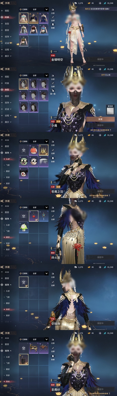 金鈿明空,神鷹之女,夕鷹(髮型),聖鷹紗(面部)