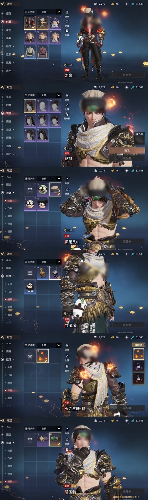 烈豪,醉山川,火之三昧(背部),碧玉髓(面部)