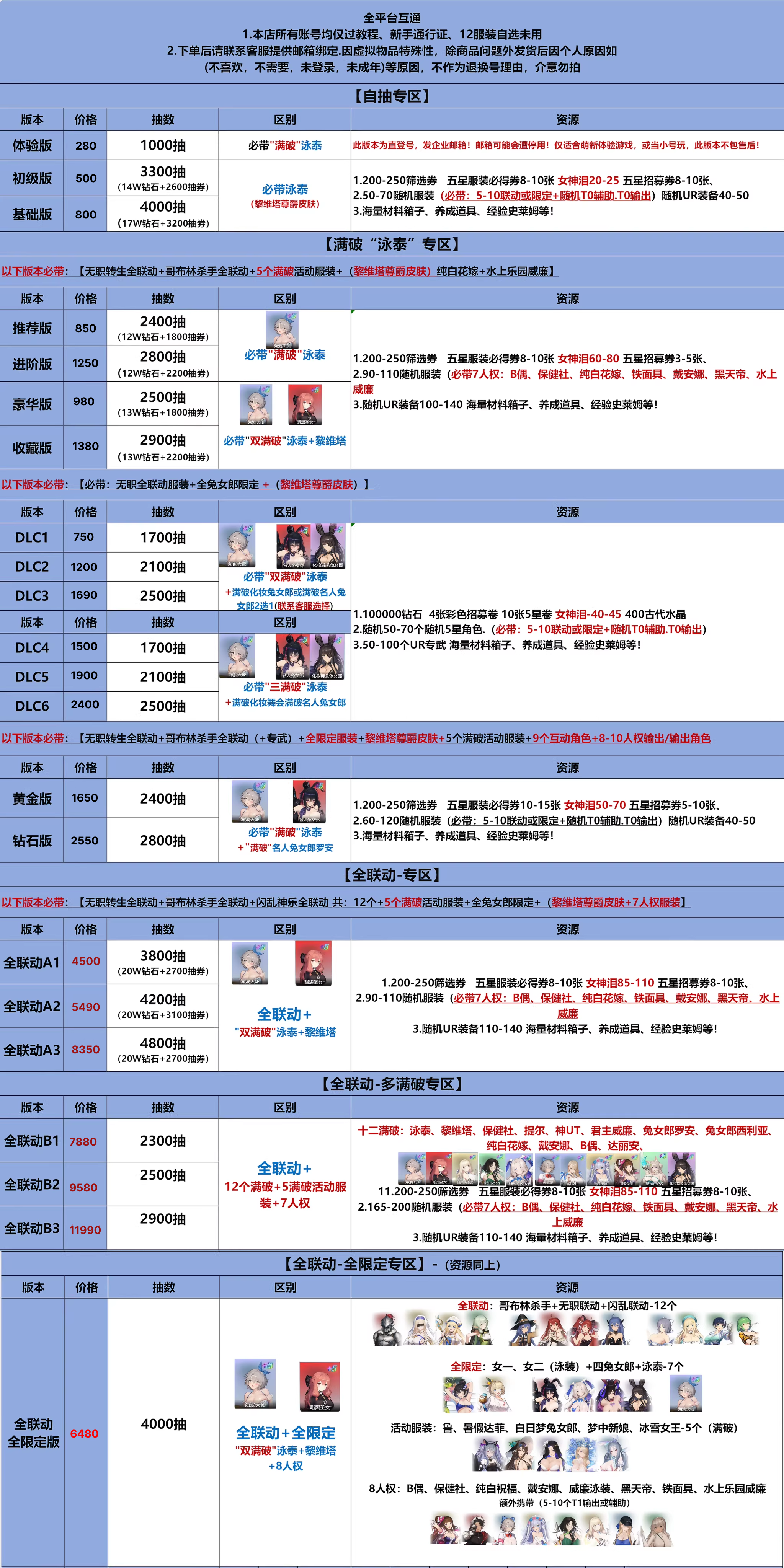 本店無使用腳本、科技、bug 真0進度帳號,以下版本為常規遊客自抽套餐