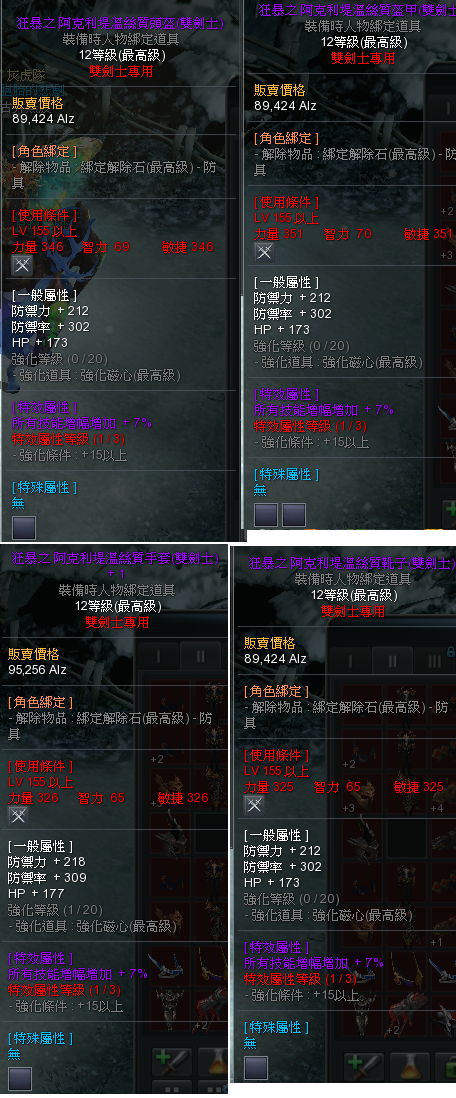 雙劍士 12階 155等使用 裝備整套