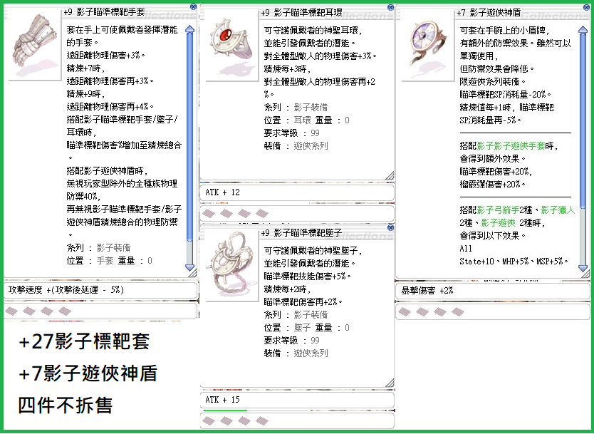 <不拆賣>+27影子瞄準標靶(手+耳+墜)+7影子遊俠神盾 1,500