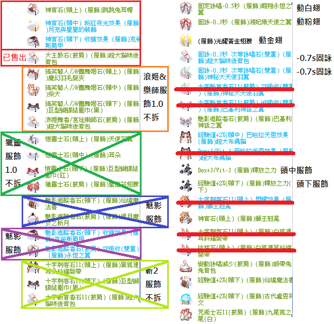 道具 3/29清裝備/服飾/固詠/求生/主教完迴/雙次詠/經驗/獅王/翱翔/席琳