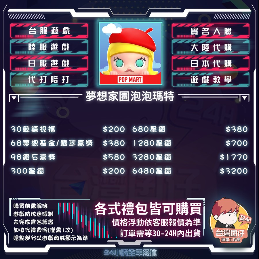 代儲【6480星鑽=3200元】 🔥夢想家園泡泡瑪特陸服🏆24H客服🏆現貨秒出🔥台灣囝仔❤️