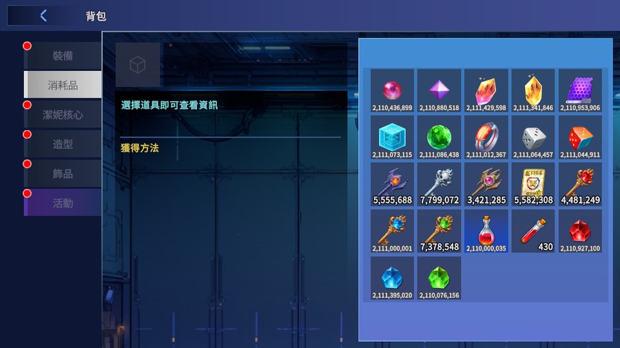 21億金幣 + 21億密幣 + 21億坎德拉 + 21億魯米諾 + 21億靈魂石 + 21億CP + 21億量子珠 + 21億量子塊 + 21億機會票卷 + 21億挑選票卷 + 21億技能票卷 + 21億決鬥場票卷 =