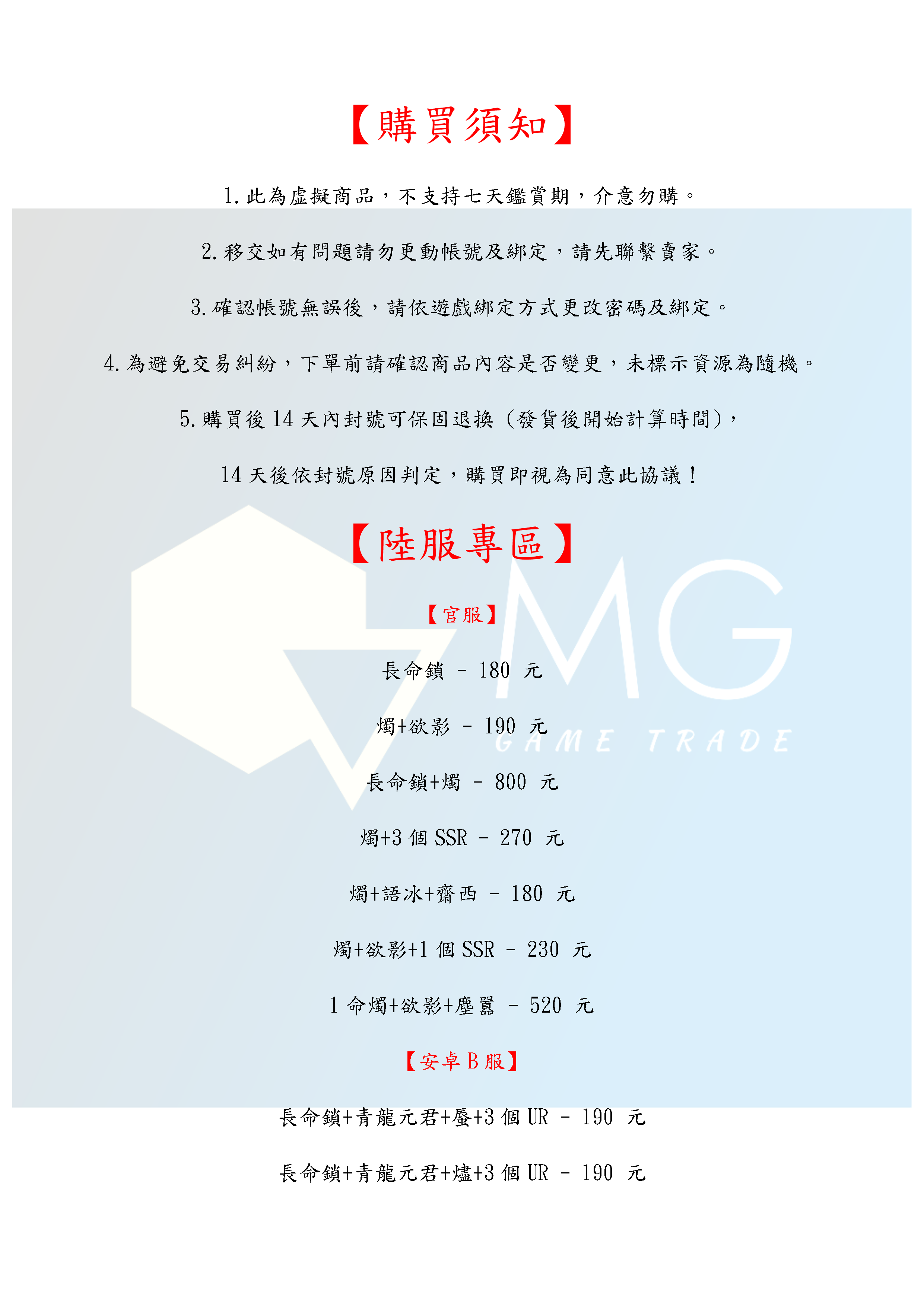 4.為避免交易糾紛,下單前請確認商品內容是否變更,未標示資源為隨機。