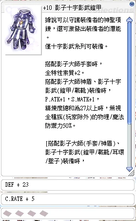 +10影子十字影武鎧甲 頂詞條:C.RATE + 5