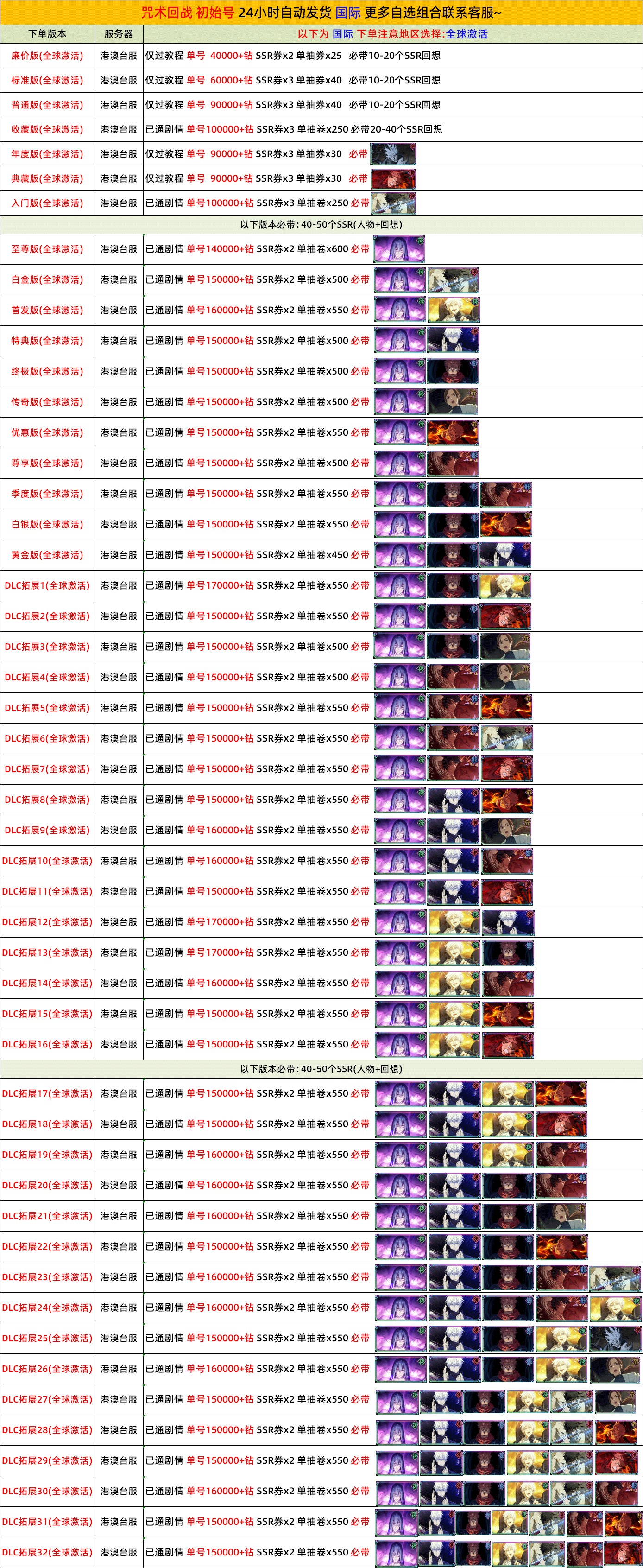 全 8591 首家 咒術回戰幻影遊行 Phantom Parade開局首抽自抽多選日服版初始號