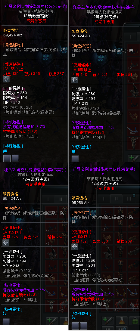 道具 弓箭手 12階 155等使用 裝備整套
