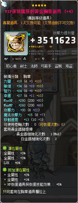 道具 【退谷出清.歡迎來談】 盜賊【VIP胸章】雙傳、%幸含全屬、均攻5.5/退谷
