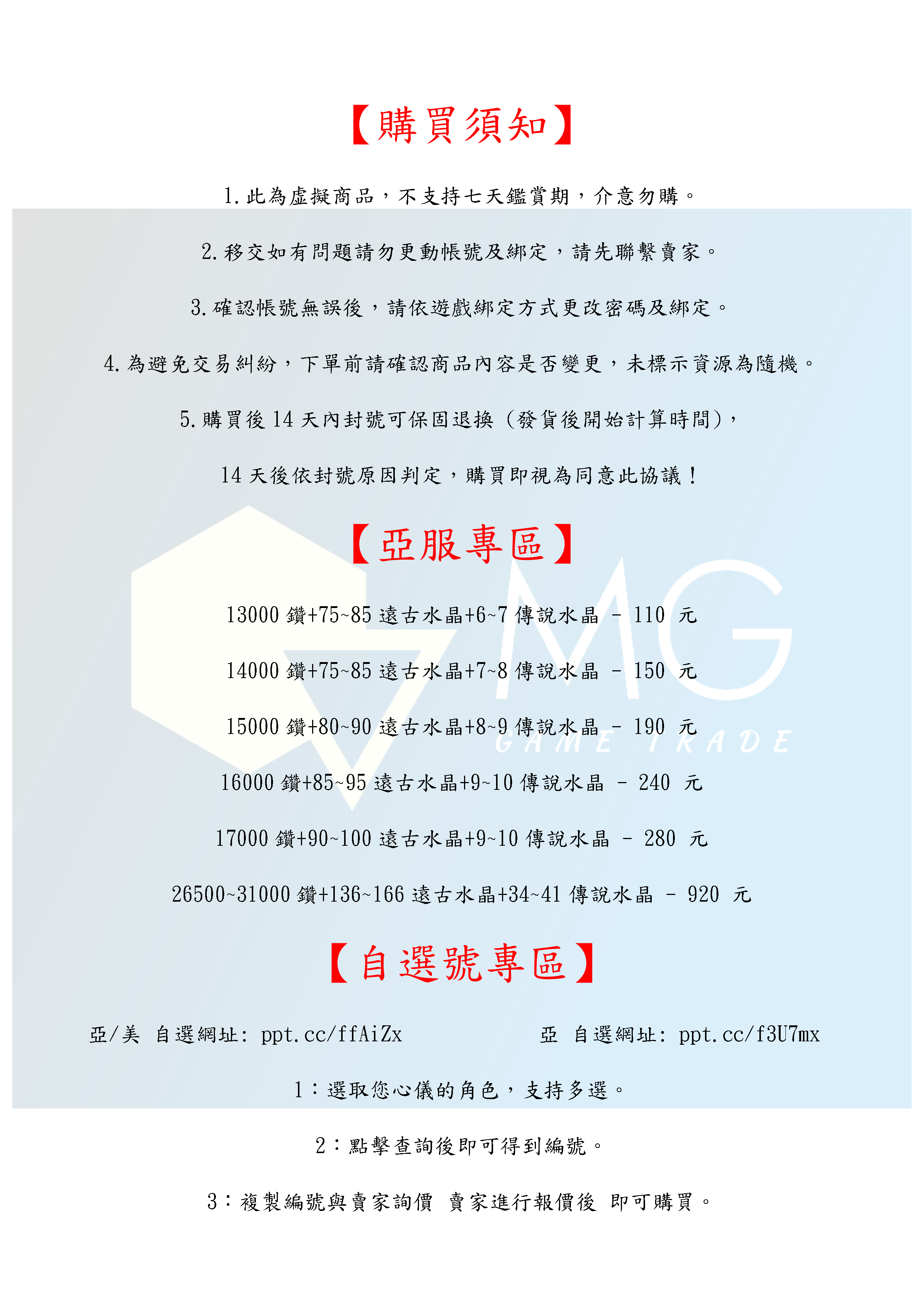 帳號 【初始號】 【MG數碼】台服 港服 亞服 多石號 多鑽石號 初始號 自抽號 自選號 自選組合