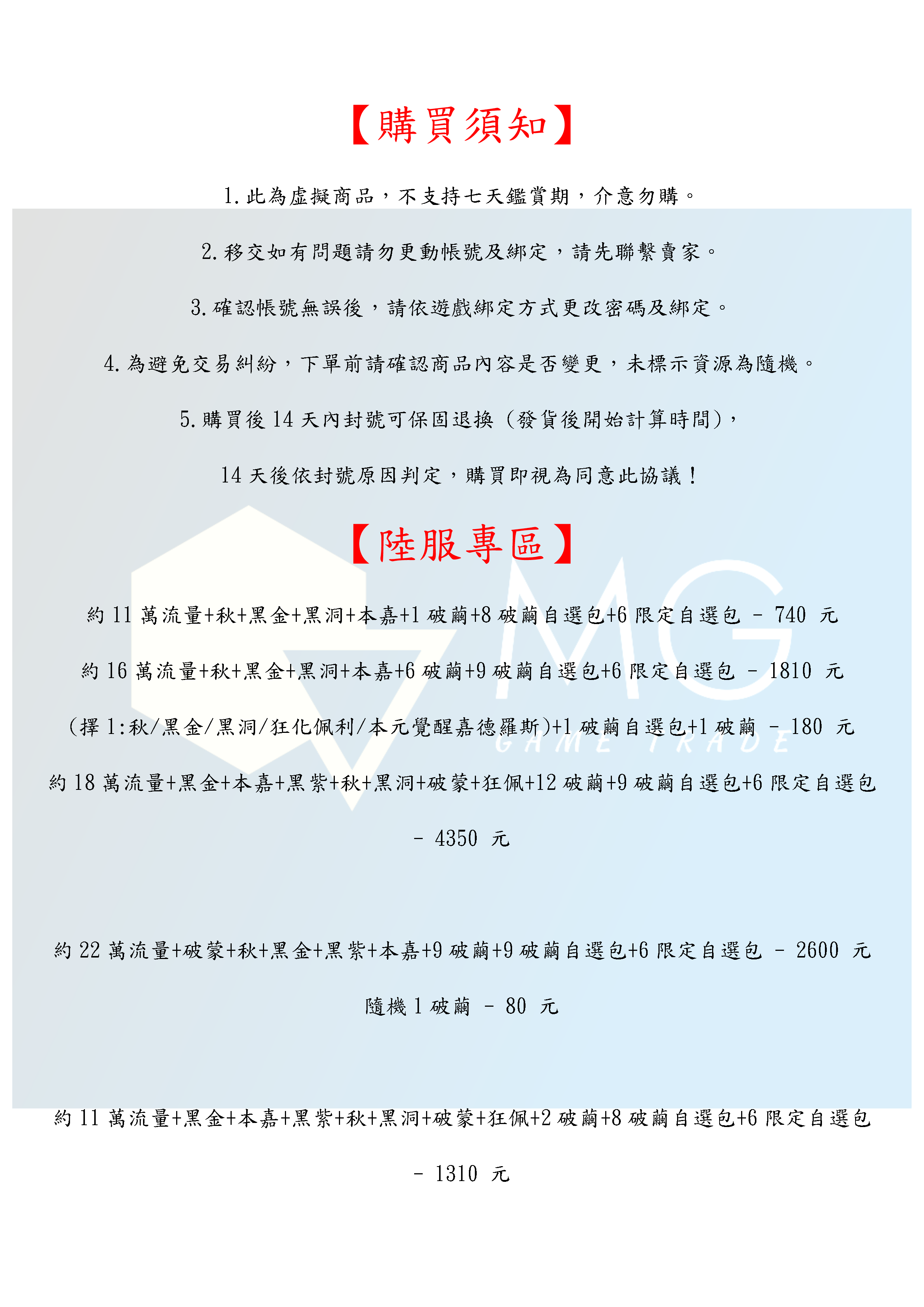 帳號 【初始號】 【MG數碼】 陸服 多石號 多流量號 初始號 自抽號 自選號