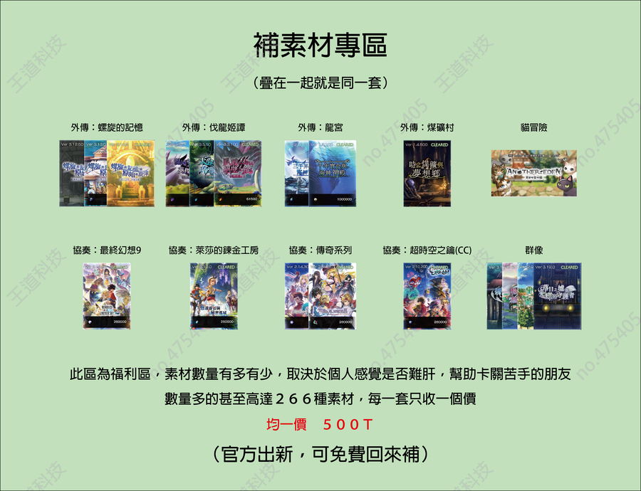 *「強化系列,皆含Lv10全強化素材」