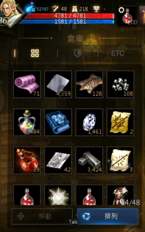 因累積多年的每日材料、龍石、歐林書、等每日送的東西皆放倉庫。