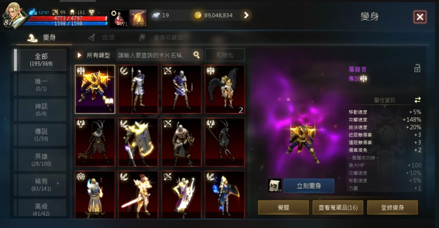 每隻屠龍者 皆有 3~4紫技 1~多紅技 已有帳號購買高階紫技- 暴風(精神)