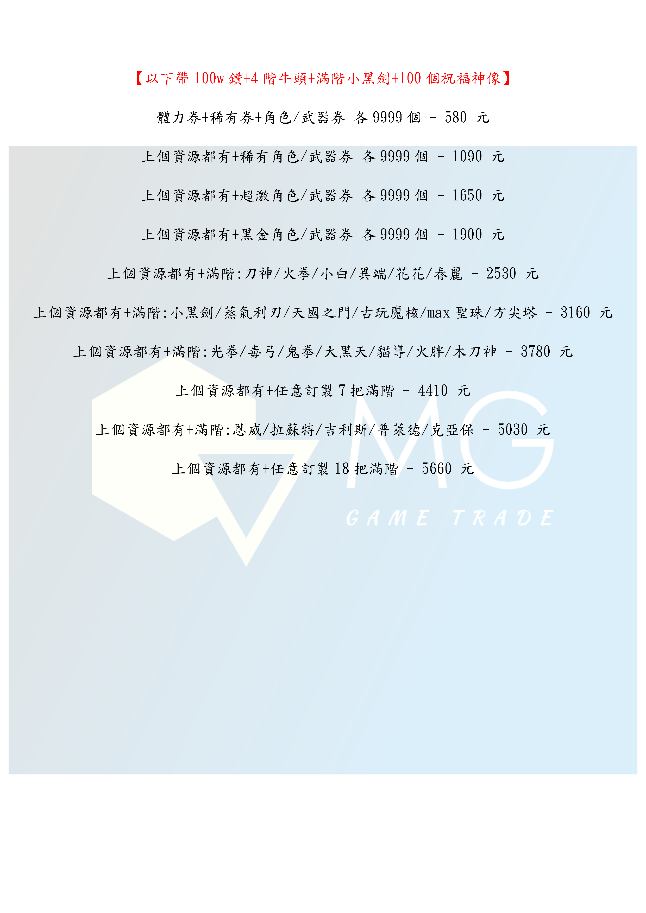 帳號 【初始號】 【MG數碼】 台 日 英 韓服 多石號 多鑽石號 初始號 自抽號 自選號