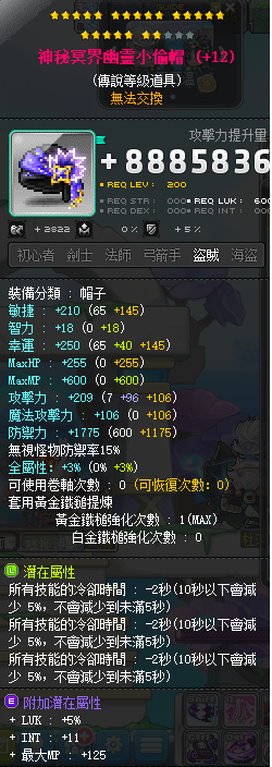 道具 【-6CD小偷帽神秘小偷帽盜賊】 22星+全V捲-6CD神秘冥界幽靈小偷帽(含剪刀)=10000盜賊-6CD帽
