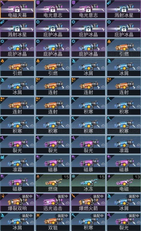 高能彈匣,凝神打擊,沉穩打擊,無畏勇士,醫療剋星,絕境反擊,先發制人,掌控大師,亂戰好手,戰地治療,寸短寸險,防禦大師,重甲戰士,孤注一擲,護身專家,鐵壁防禦,防爆專家,不屈勇士,生生不息,活力充沛,原力裝置