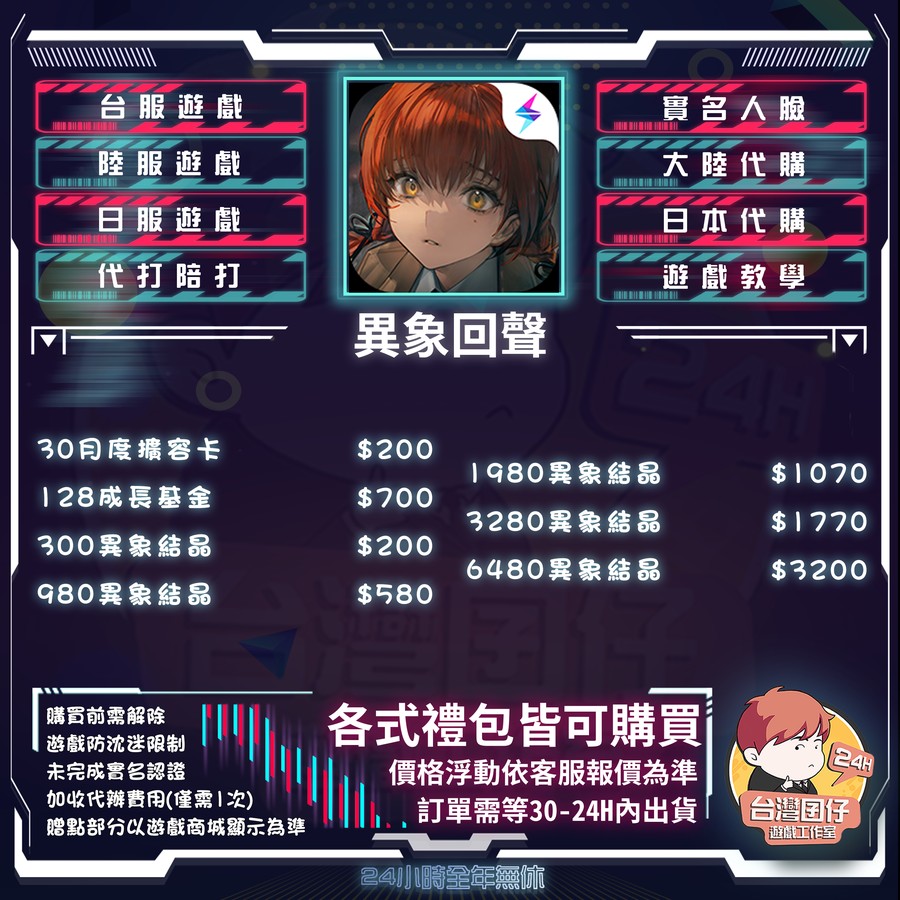 代儲【6480異象結晶=3200元】 🔥異象回聲陸服🏆24H客服🏆現貨秒出🔥台灣囝仔❤️