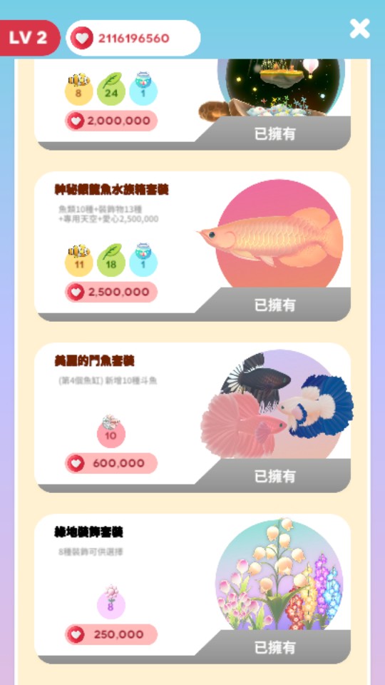 21億愛心 + 遊戲當前全禮包解鎖 = 500