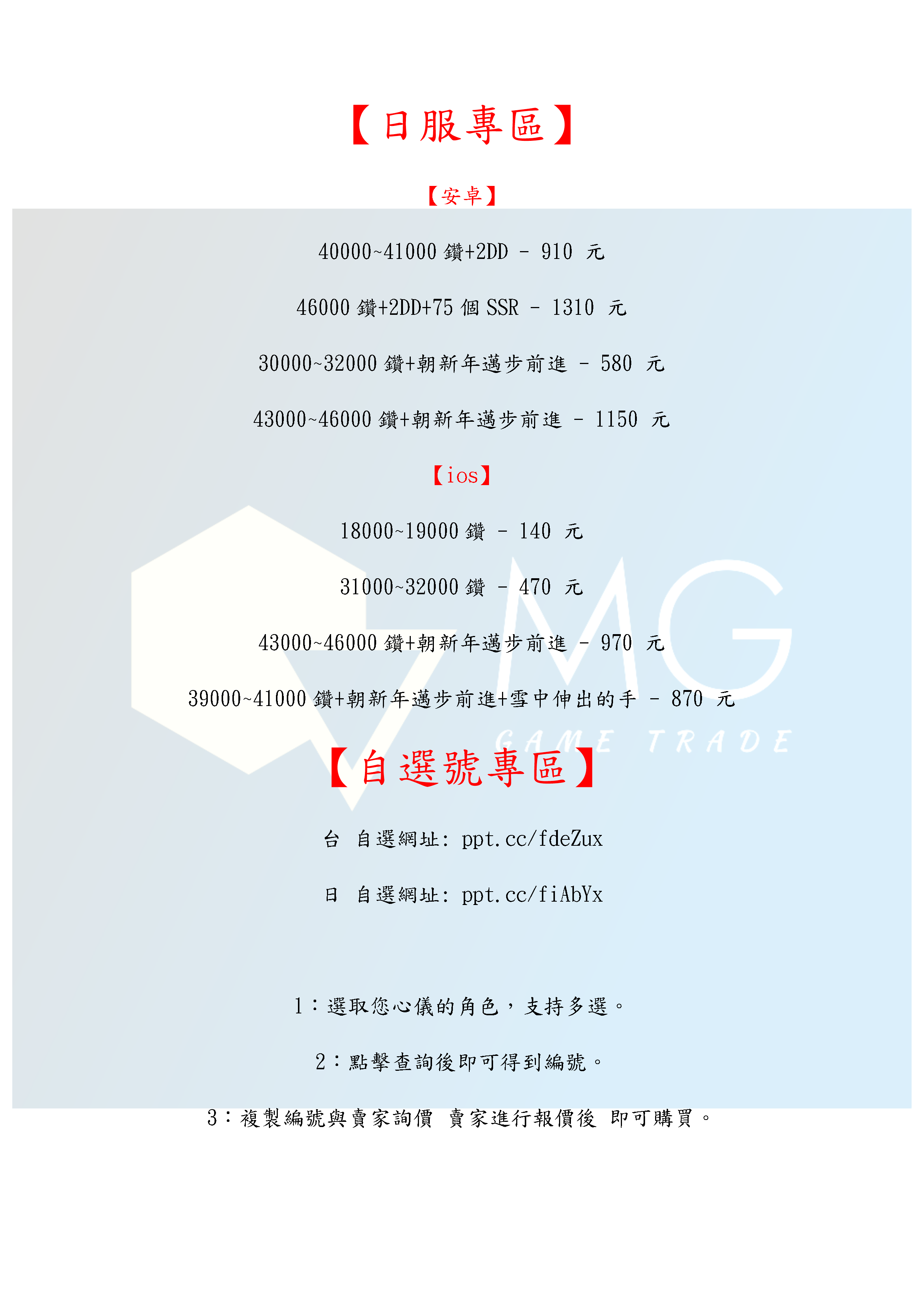 帳號 【初始號】 【MG數碼】 台服 日服 多石號 多鑽石號 初始號 自抽號 自選號 自選組合