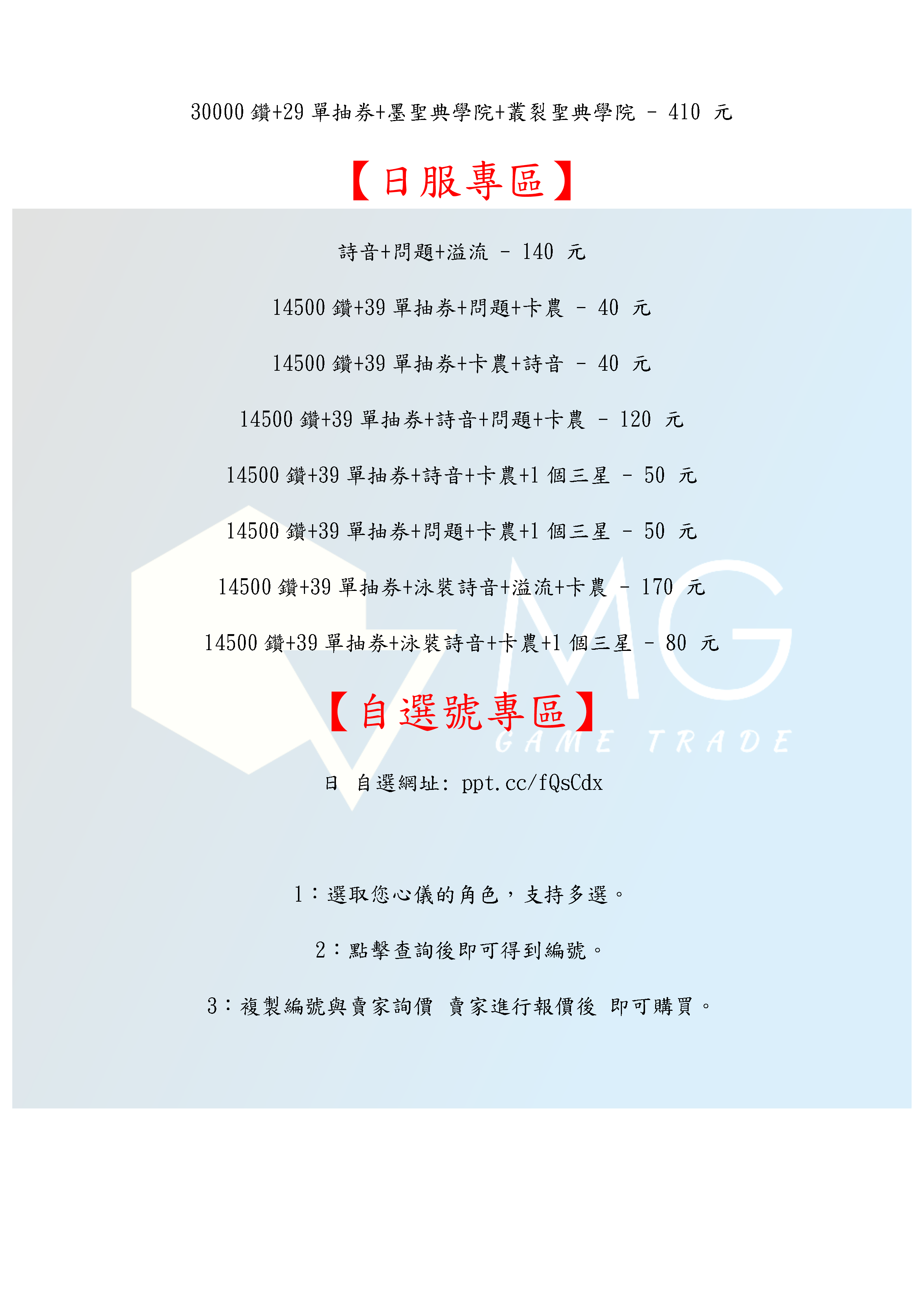 帳號 【初始號】 【MG數碼】 日服 國際服 多石號 初始號 自抽號 自選號 自選組合