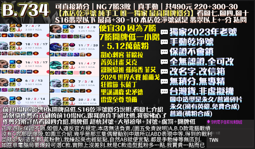 👉10場NG 好KDA+保8勝+工時6H,有現貨,也可指定帳號代刷