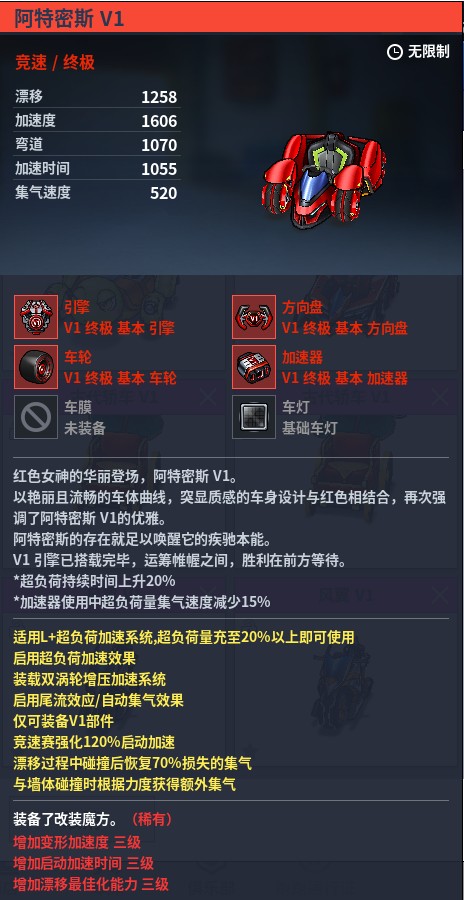 膠囊改阿提密斯V1(起步三級+變形三級+飄移最佳化三級)丨永久起步飛寵