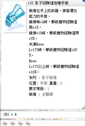 +10影子經驗值倍增手套[CRI+4]/影子經驗手套/關:經驗神盾經驗套