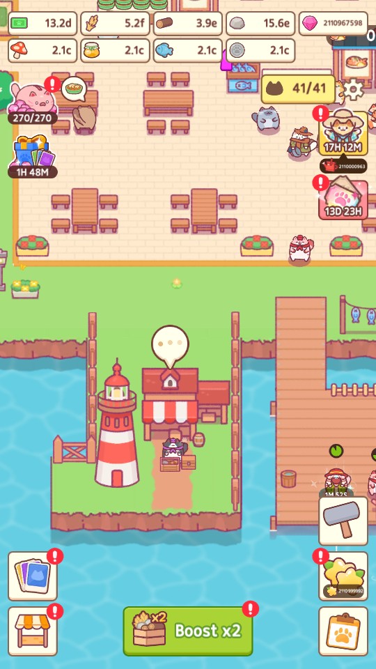 21億鑽 + 21億鈔票 + 21億星星 + 21億木頭 + 21億石頭 + 21億小麥 + 21億銀幣 + 21億香菇 + 21億蜂蜜 + 21億魚 + 21億木塊 + 21億石塊 + 21億金條 + 21億袋裝小麥 = 700