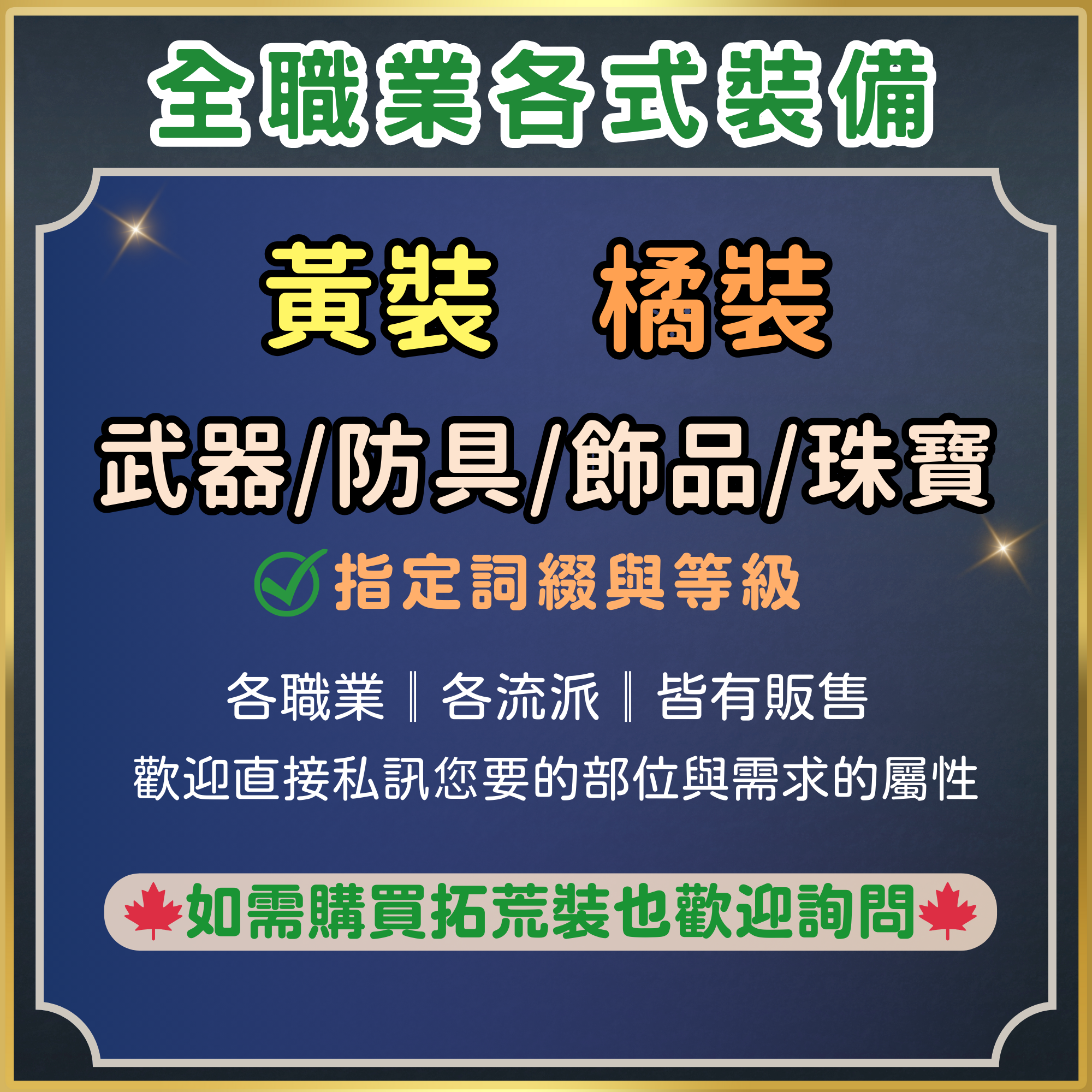 【因種類繁多無法全部列出,如您需要任何傳奇裝備,請直接私訊告知您要的裝備名稱哦!】