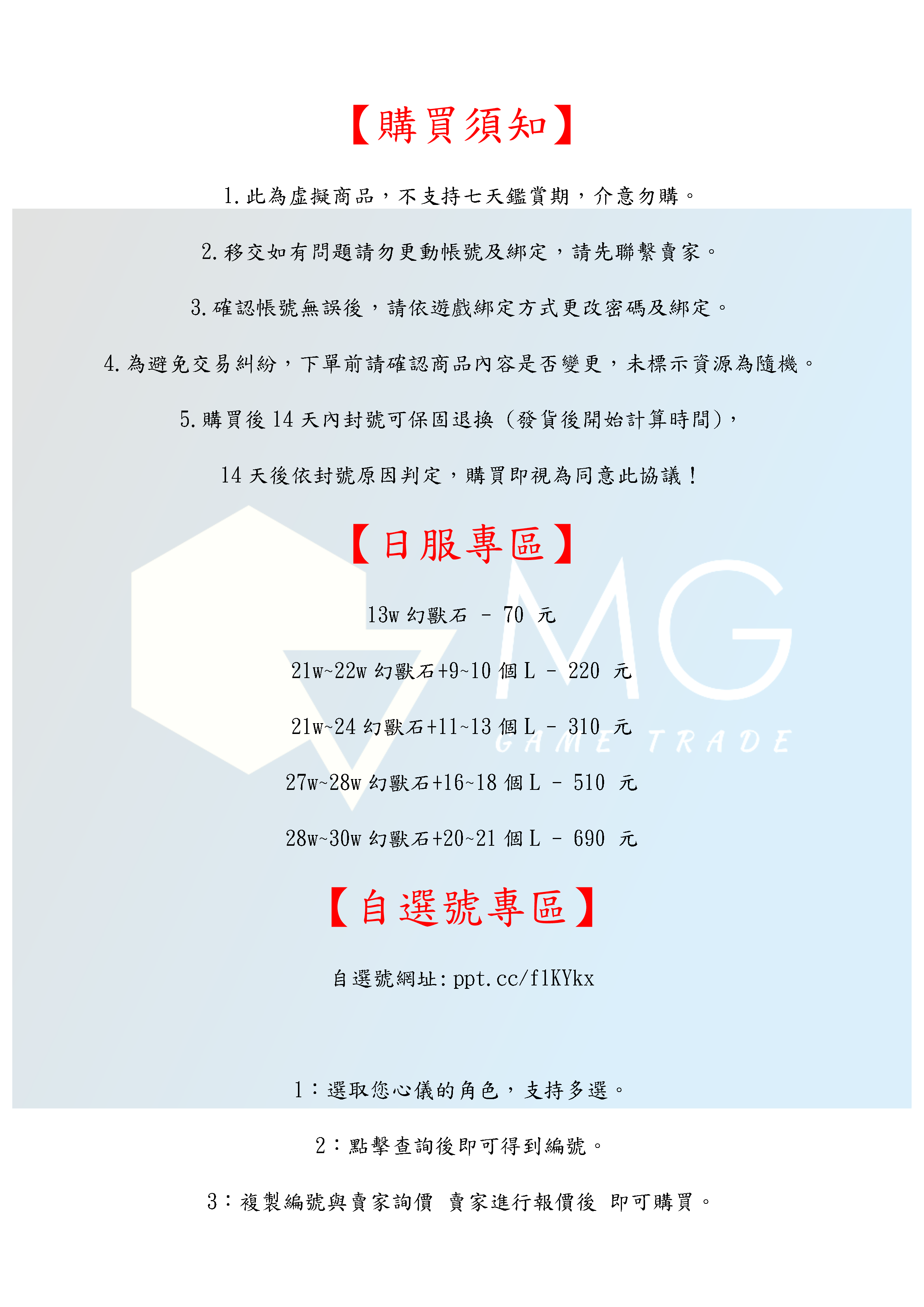 帳號 【初始號】 【MG數碼】 日服 多石號 多幻獸石號 初始號 自抽號 自選號 自選組合