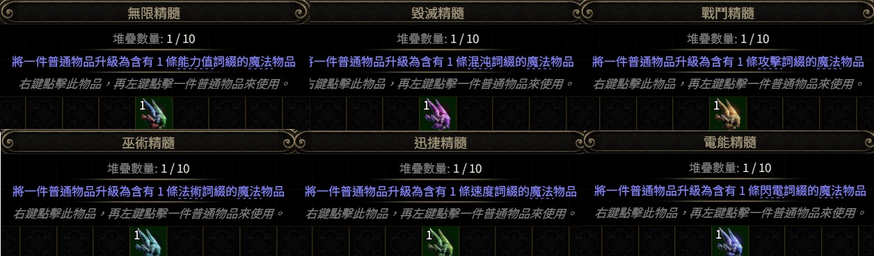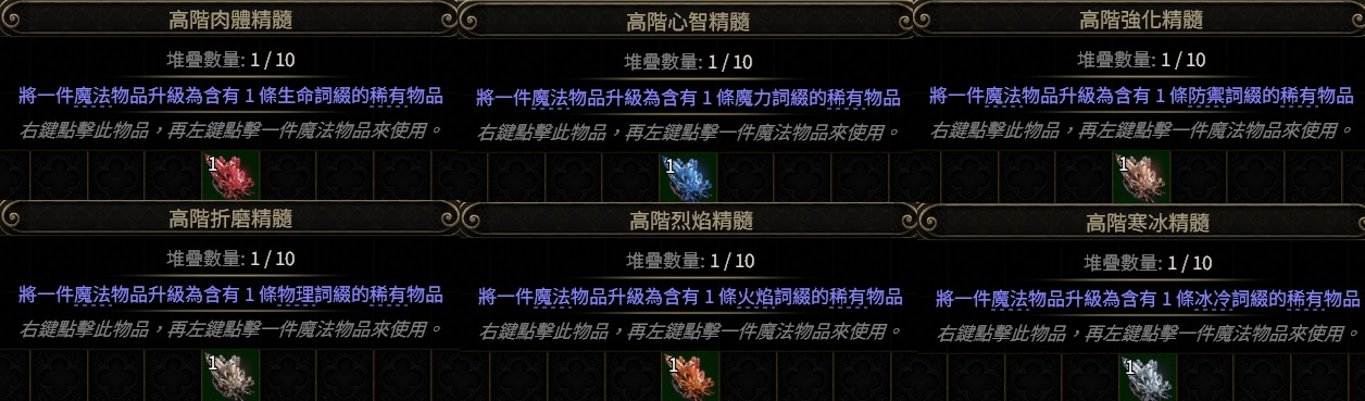 『 精髓材料 』『 換界石地圖 』『 代6洞6L技能寶石 』