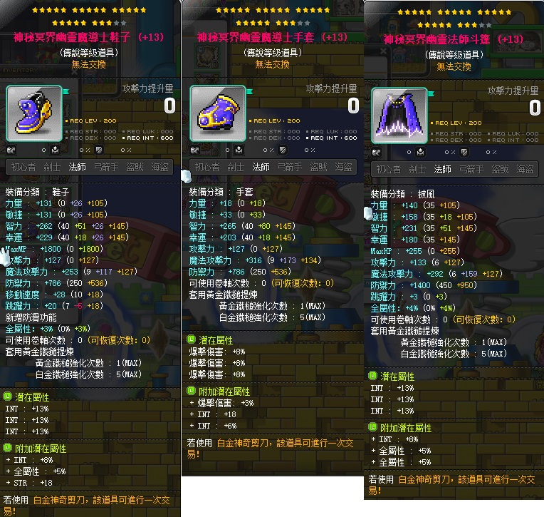 道具 【%智法裝】 23星/24星/均13/均14/火毒/龍魔/三法/煉獄退谷