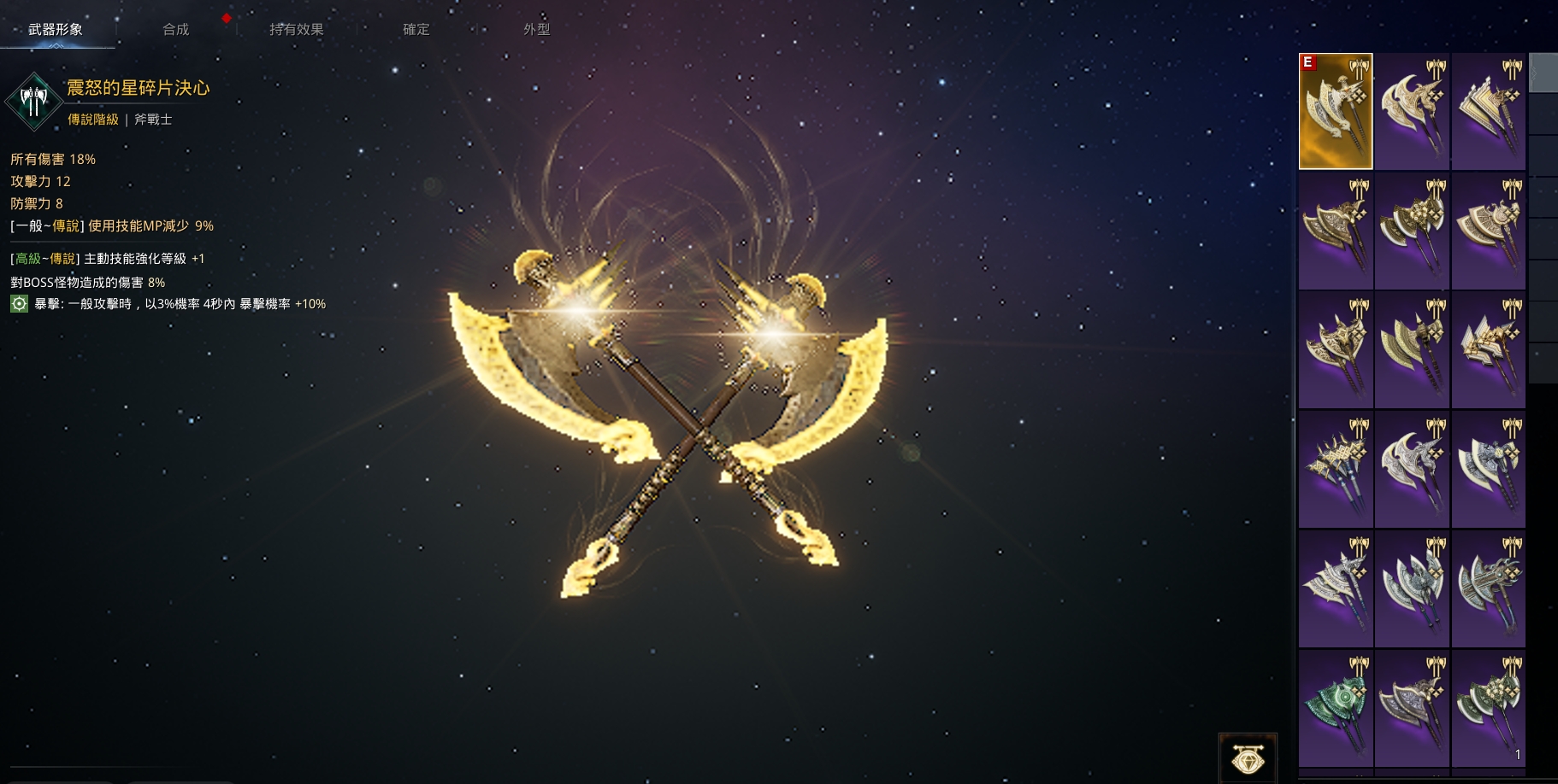 帳號 【88等、華納02 華2、女武神/斧戰】 戰力64000 10金造型/9金飛坐騎/1金武器造型
