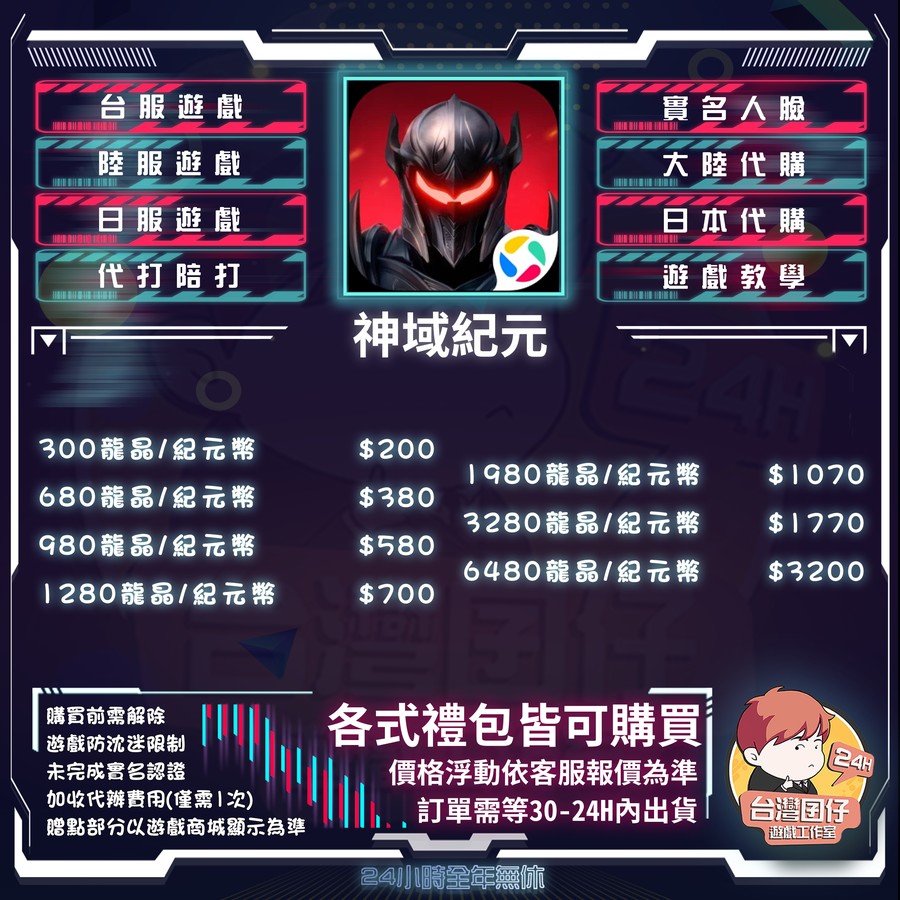 代儲【300龍晶/紀元幣=200元】 🔥神域紀元陸服🏆24H客服🏆現貨秒出🔥台灣囝仔❤️