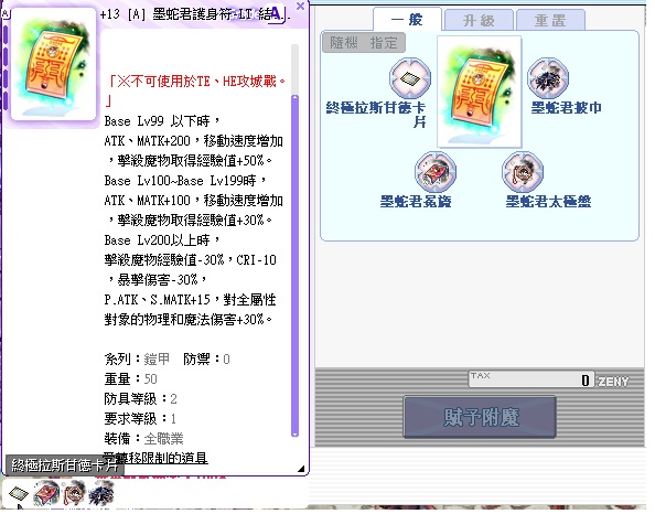 道具 +13 [A] 墨蛇君護身符-LT[法系附魔/終極拉斯卡]+全種族3%墨蛇波利墨