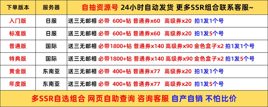另售自選SSR開局組合