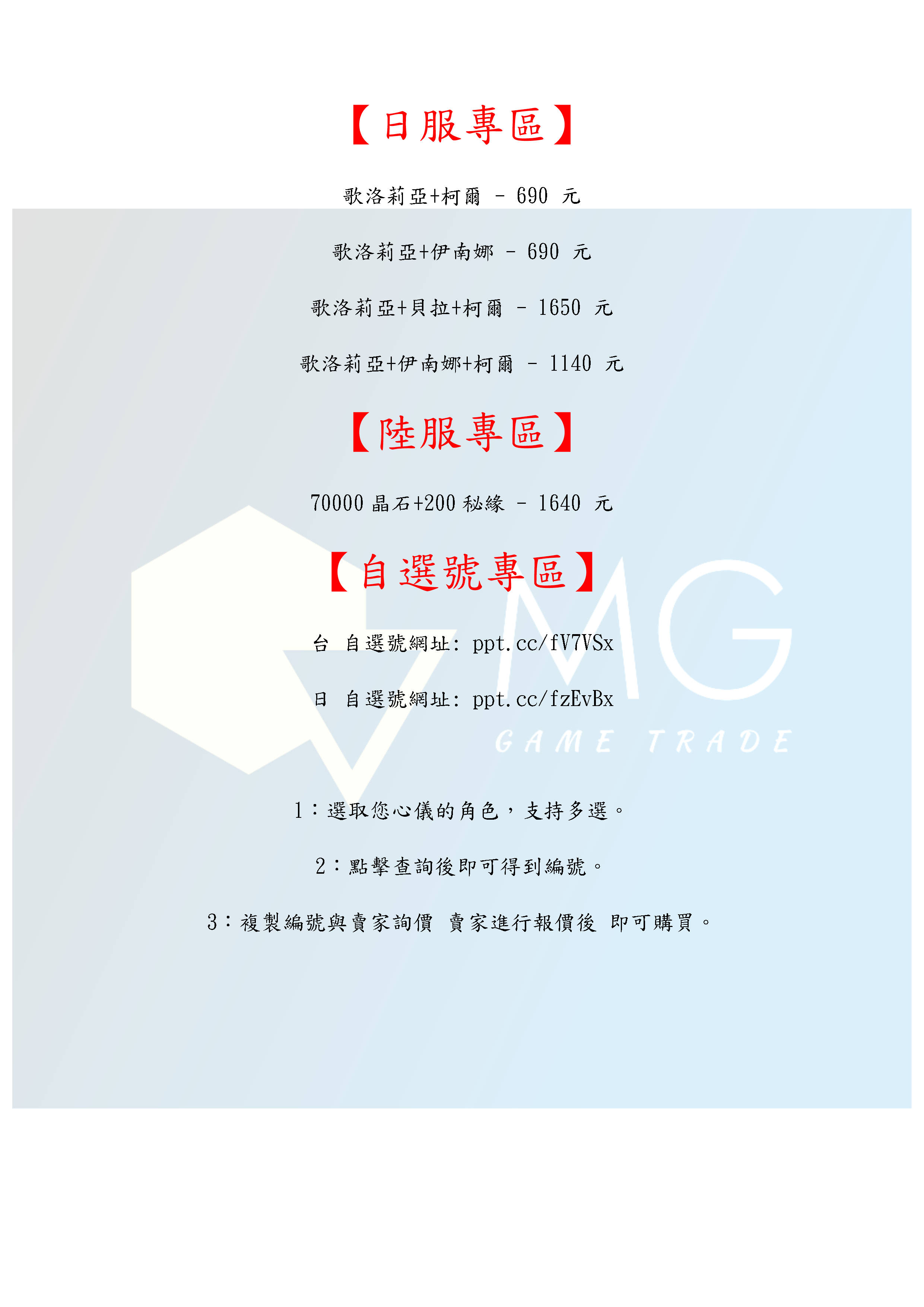帳號 【開局號】 【MG數碼】 台服 日服 陸服 多石號 初始號 自抽號 自選號 自選組合