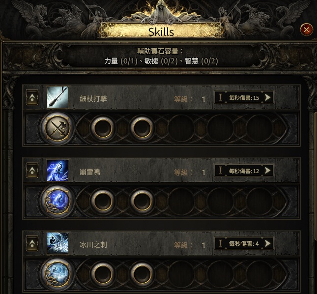 基本是1主技能 加上 2個輔助洞 = 3L3洞