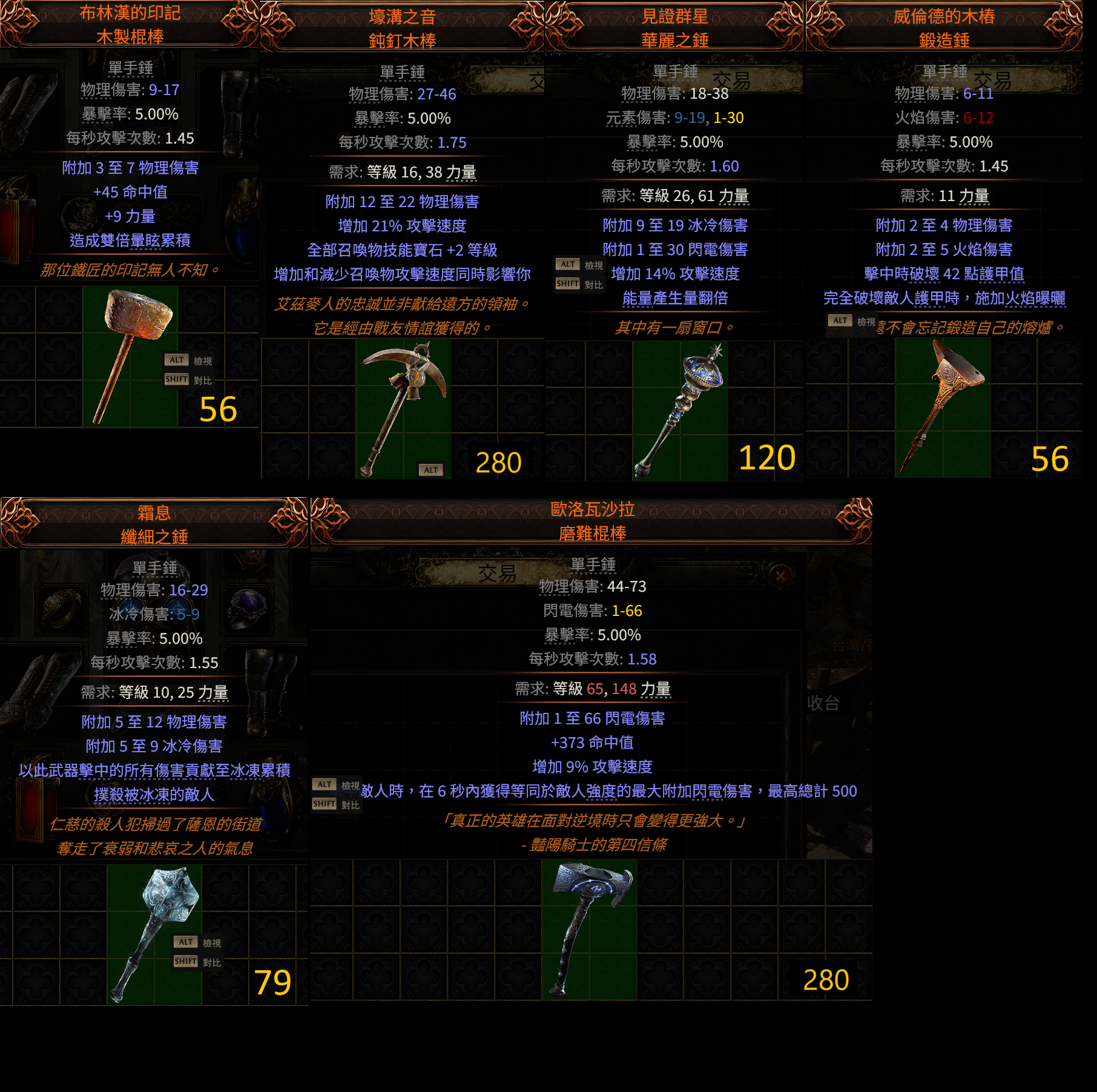道具 【標準】 『單手錘』威倫德的木樁、壕溝之音、歐洛瓦沙拉、見證群星、 霜息、布林漢
